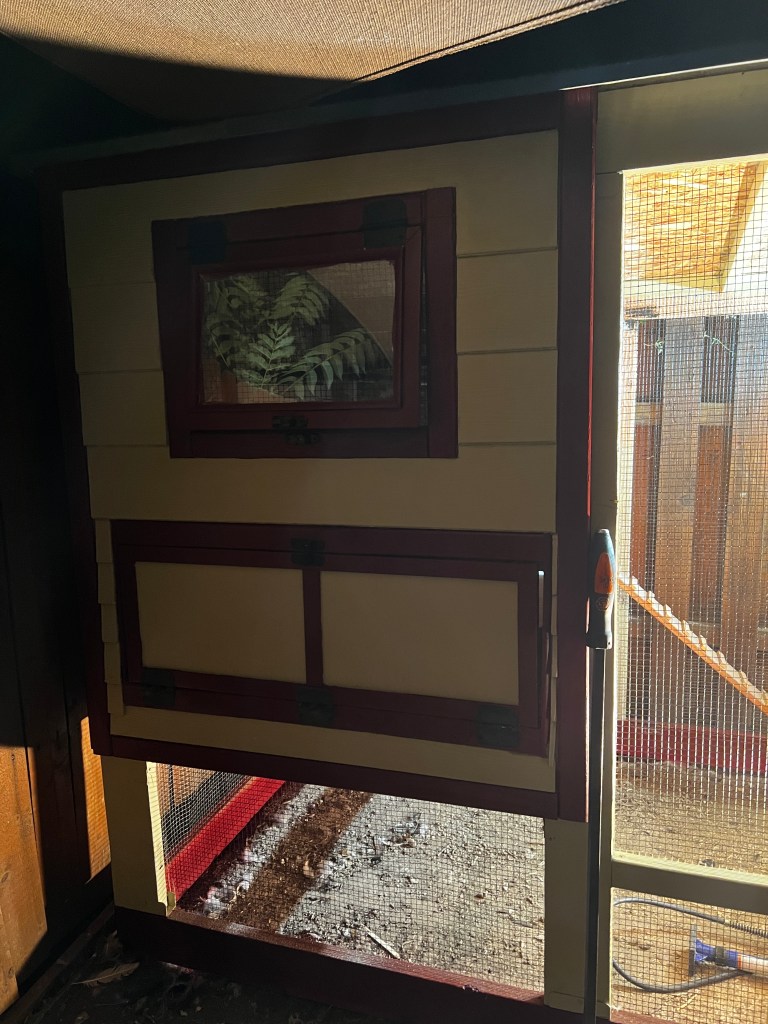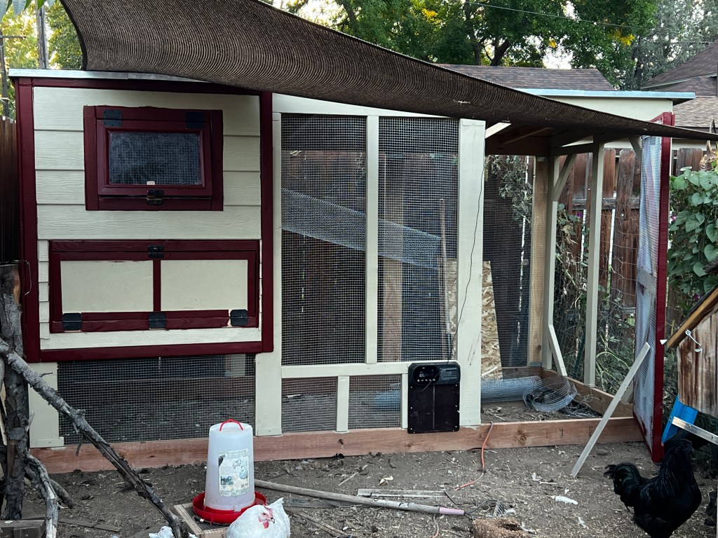 Throughout our careers as “chicken tenders” (see what I did there?), we have had a total of three different coops. The first was the cheesiest Tractor Supply special that our cheap-ass selves could find. No hate to Tractor Supply – they’re out there doing the public service of farm supply and demand at a reasonable price. (Not sponsored, by the way, just a fan).