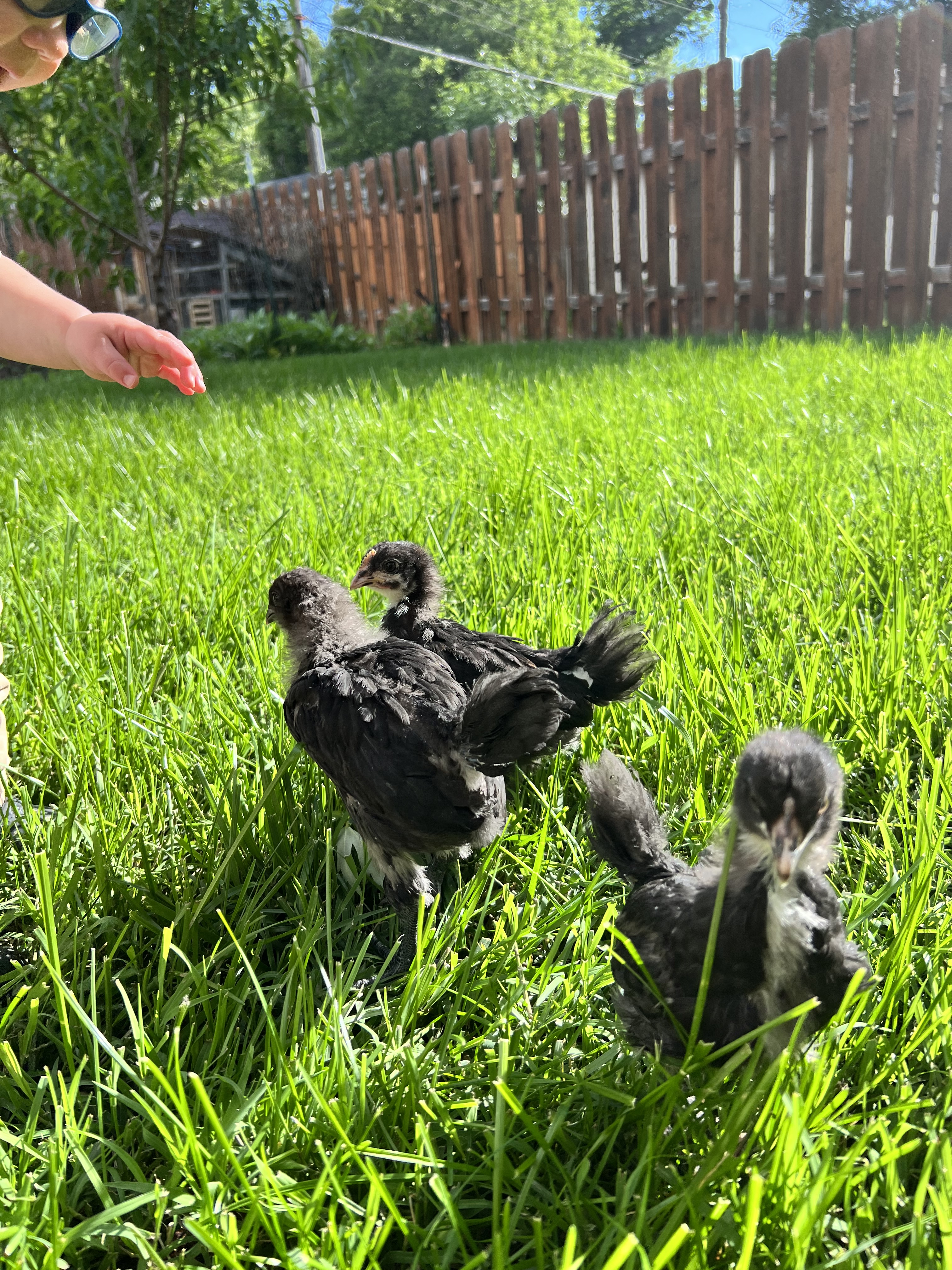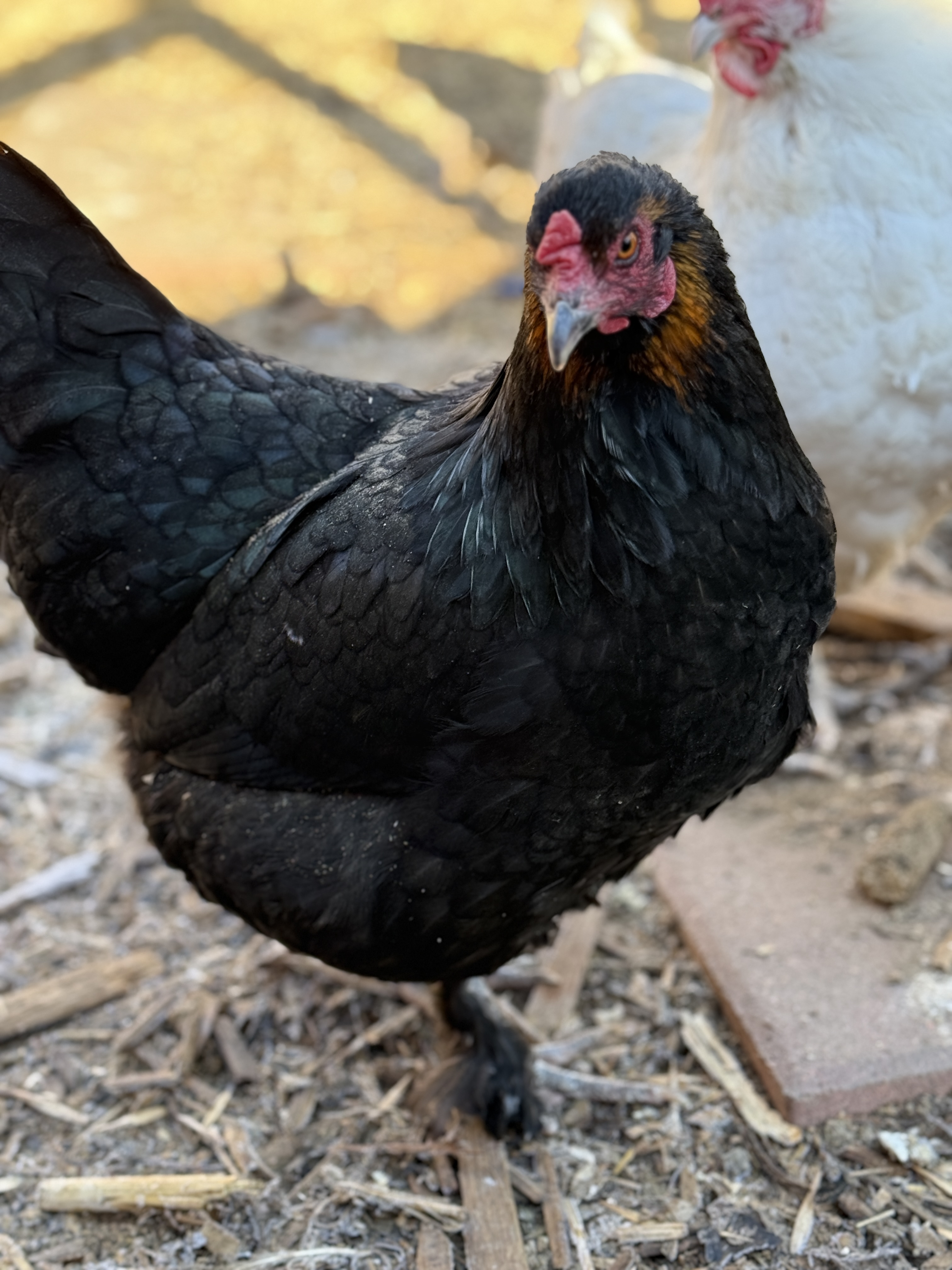 Karen joined our family when she was a baby chick as part of our Mean Girls. She is skittish and savvy and a pretty fluffy girl. Her eggs are a beautiful olive green and are the largest that our flock lays.